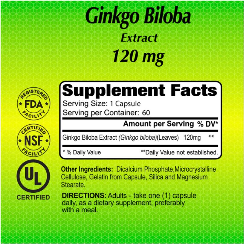 - Amount per serving: 120mg of Ginkgo Biloba Extract